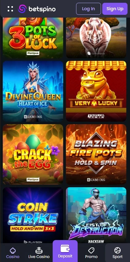 BetSpino interface is ontworpen voor gebruik met één hand, met duidelijke navigatie en een lay-out die belangrijke acties binnen handbereik houdt. Gamefilters helpen je sorteren op categorie, provider en features, zodat je vindt wat je zoekt zonder lang te scrollen. De kassa, promoties en support-ingangen staan op voorspelbare plekken, wat helpt wanneer je snel tussen games wisselt.